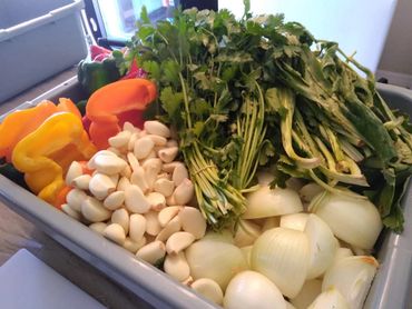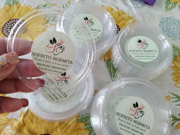 This simple cooking base is made from natural ingredients, such as onions, garlic, peppers, cilantro, coriander, pure olive oil, and with lots of passion, because we love what we do. No salt. No additives. Our business now operates in Wimauma, FL. We offer a 24-ounce container for an affordable $7.00.